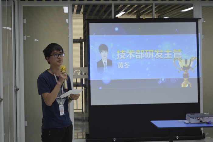黃冬同學入職兩年多來,工作認真負責,設計名榜模板30多套,參與完成的項目20多個,完善了公司平臺網盟、名榜、案例、黃頁等平臺的升級更新。其參與項目均受客戶好評。大會中黃冬同學對公司自己的肯定表示由衷的感謝。